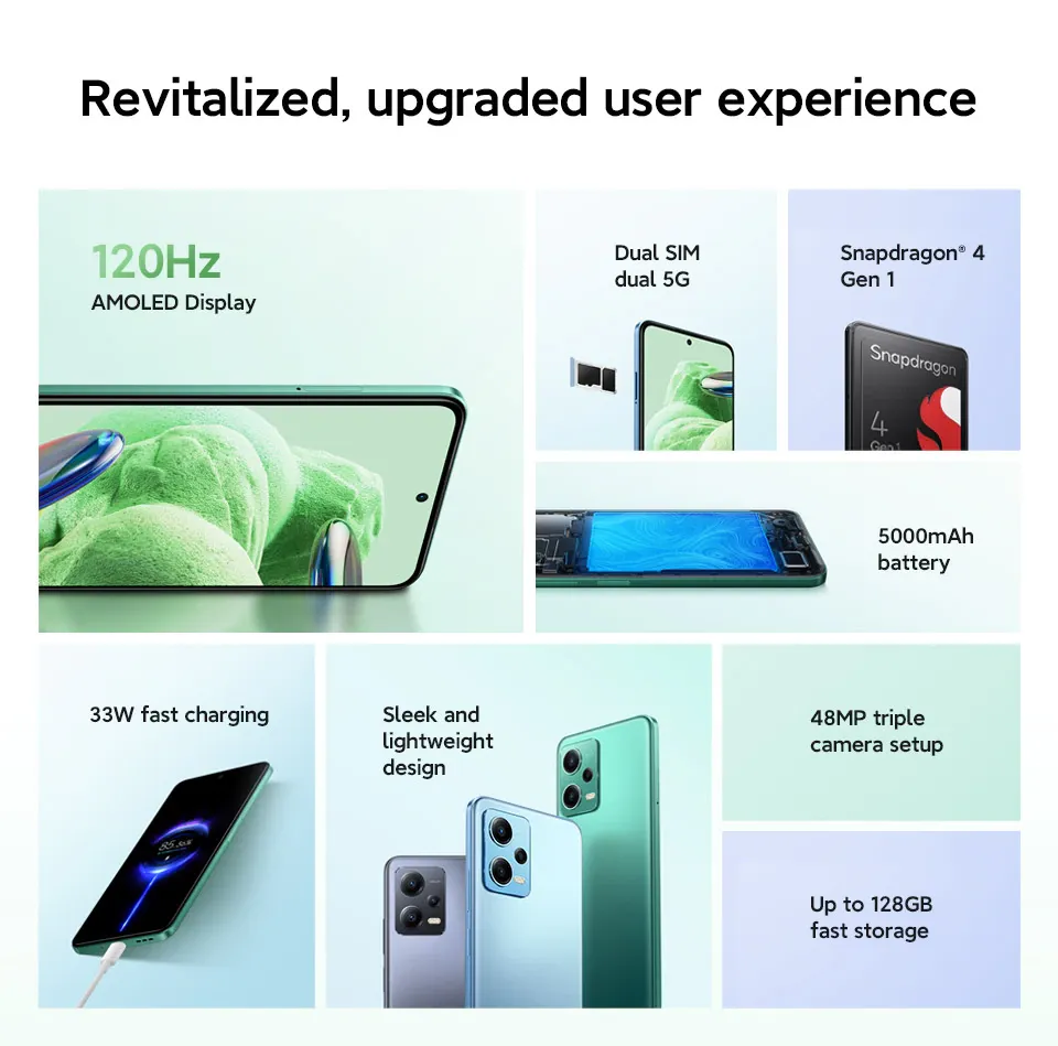 小米红米Note 12 5G 256GB Rom+8GB Ram/全球版/1年小米本地保修(免费:钢化玻璃+后盖)