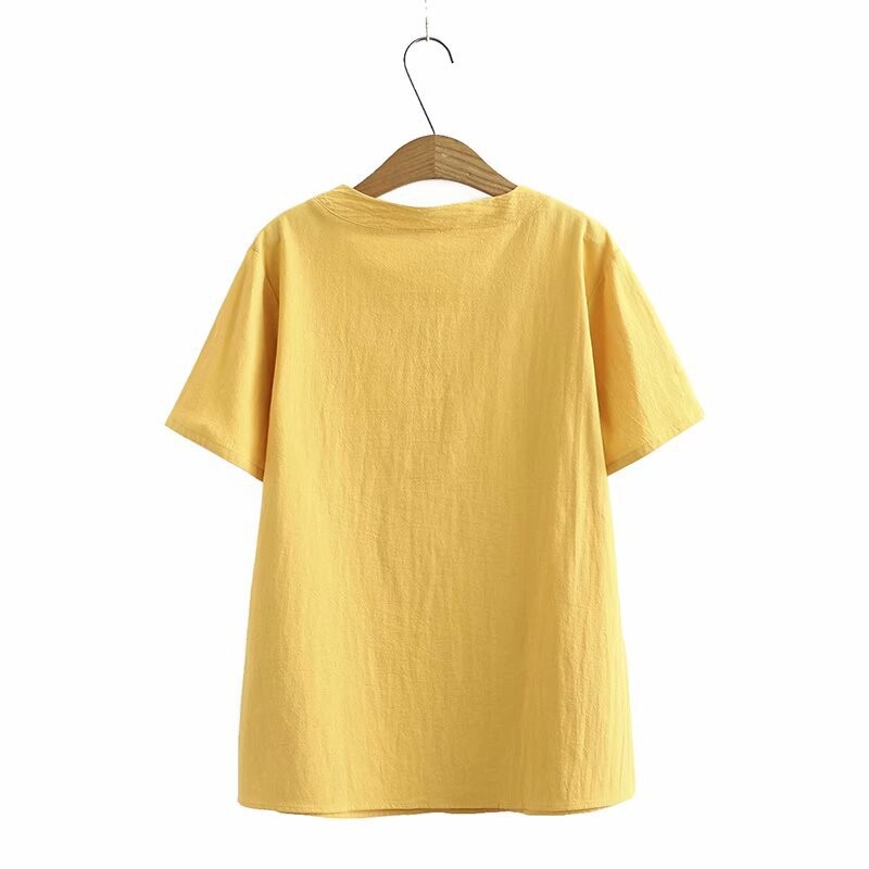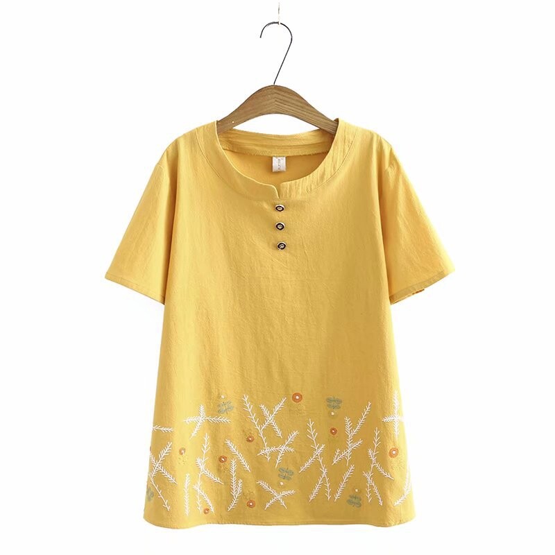 加大码白色红色女式花朵刺绣衬衫短袖夏季衬衫复古上衣